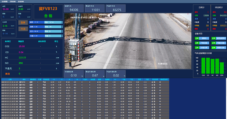 1. 數(shù)據(jù)采集模塊:實時采集車輛抓拍系統(tǒng)、氣體分析儀、測速系統(tǒng)、環(huán)境氣象設(shè)備、黑煙車電子抓拍系統(tǒng)的相關(guān)數(shù)據(jù),包括檢測車次、汽油車次、柴油車次、合格數(shù)、超標(biāo)數(shù)、無效數(shù)、以及日統(tǒng)計、累計統(tǒng)計等信息。